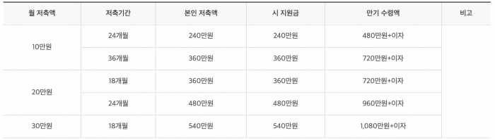 최대 36개월, 본인 저축액 최대 360만 원을 넣을 수가 있고 부산시에서 지원해 주는 금액은 360만 원입니다. 만기 시 720만 원에 이자가 붙은 금액이 플러스됩니다.