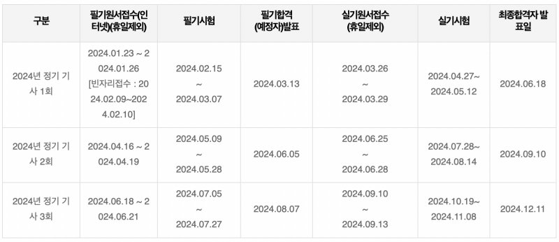 ◼︎ 2024 전기기사 시험일정
