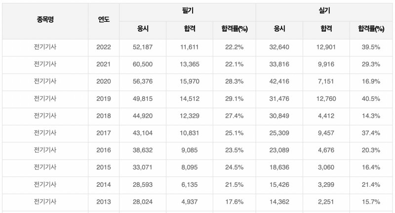 ◼︎ 전기기사 합격률 살펴보기